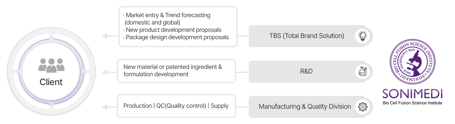 SONIMEDI offers a fully integrated ODM system—covering everything from product planning to production—based on sharp market insights. Working closely with our TBS (Total Brand Solution) team, we deliver customized solutions that reflect client needs and align perfectly with each brand’s identity.